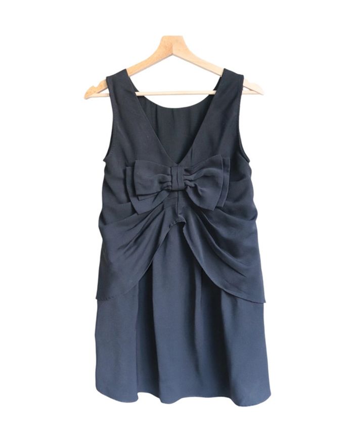 📃 description : Jolie robe à porter été comme hiver avec gros noeud dans le dos et beau décolleté 🎨 couleur : noir 🆗 état : parfait état 📏 taille : taille 0 🏁 motifs : uni