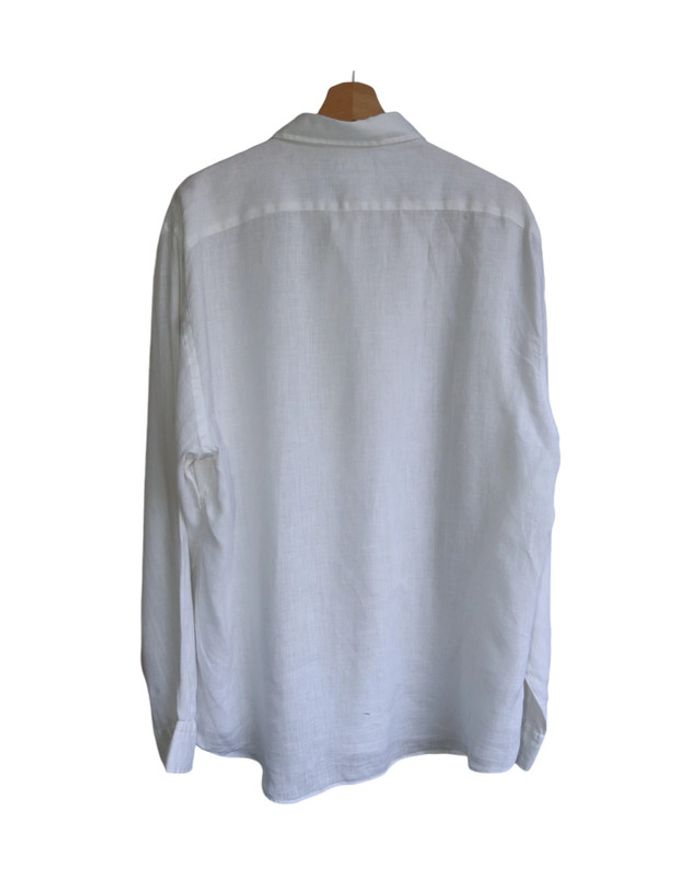 📃 description : Belle chemise blanches en lin manches longues 🎨 couleur : blanc 🆗 état : parfait état 📏 taille : XXL 🏁 motifs : uni 🏷 composition : lin