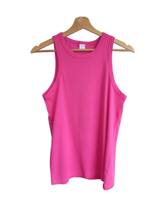 📃 description : Débardeur type marcel 🎨 couleur : rose, fuchsia 🆗 état : parfait état 📏 taille : taille 4 soit XL 🏁 motifs : uni 🏷 composition : 100% coton