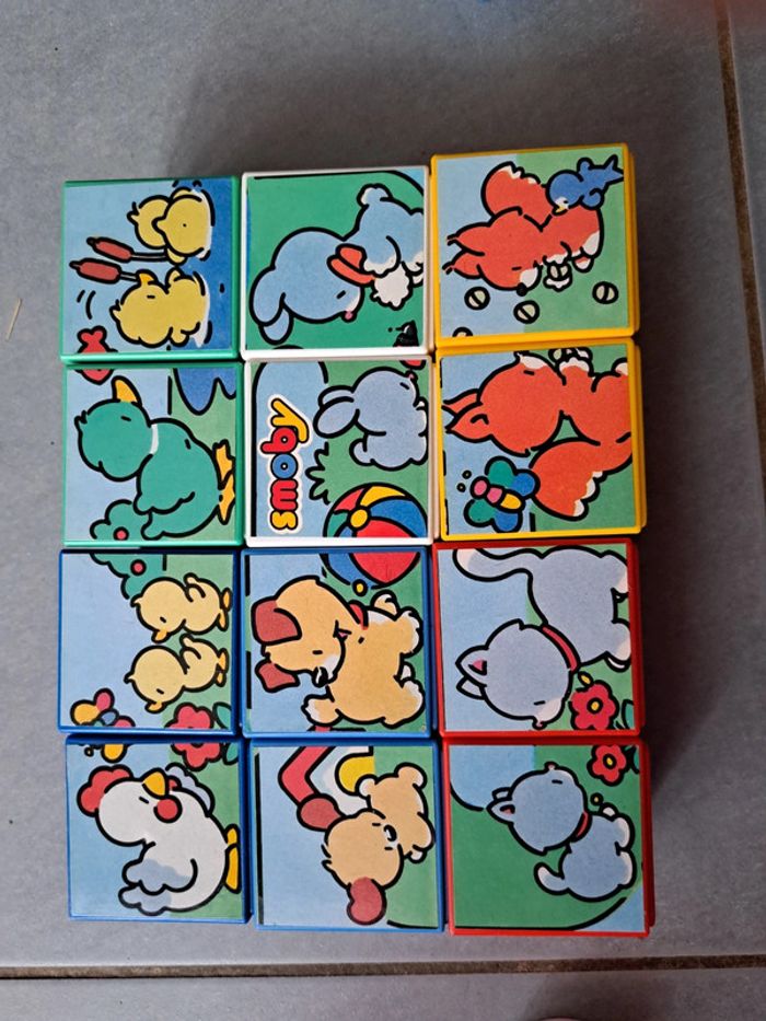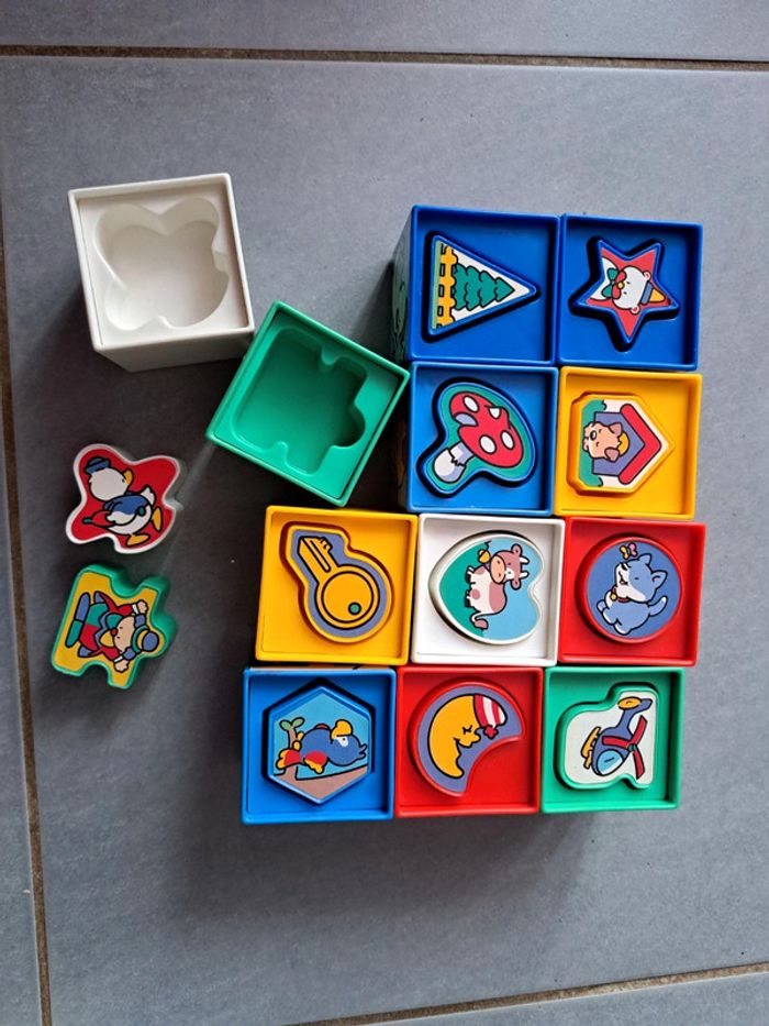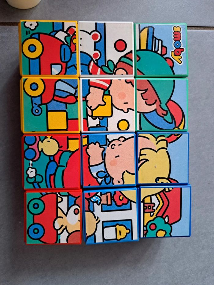 Jeux / jouets vintage Cubiformes Smoby 1989 12 cubes empilables, association de forme, de couleurs, 2 puzzles Très bon état Sans boîte