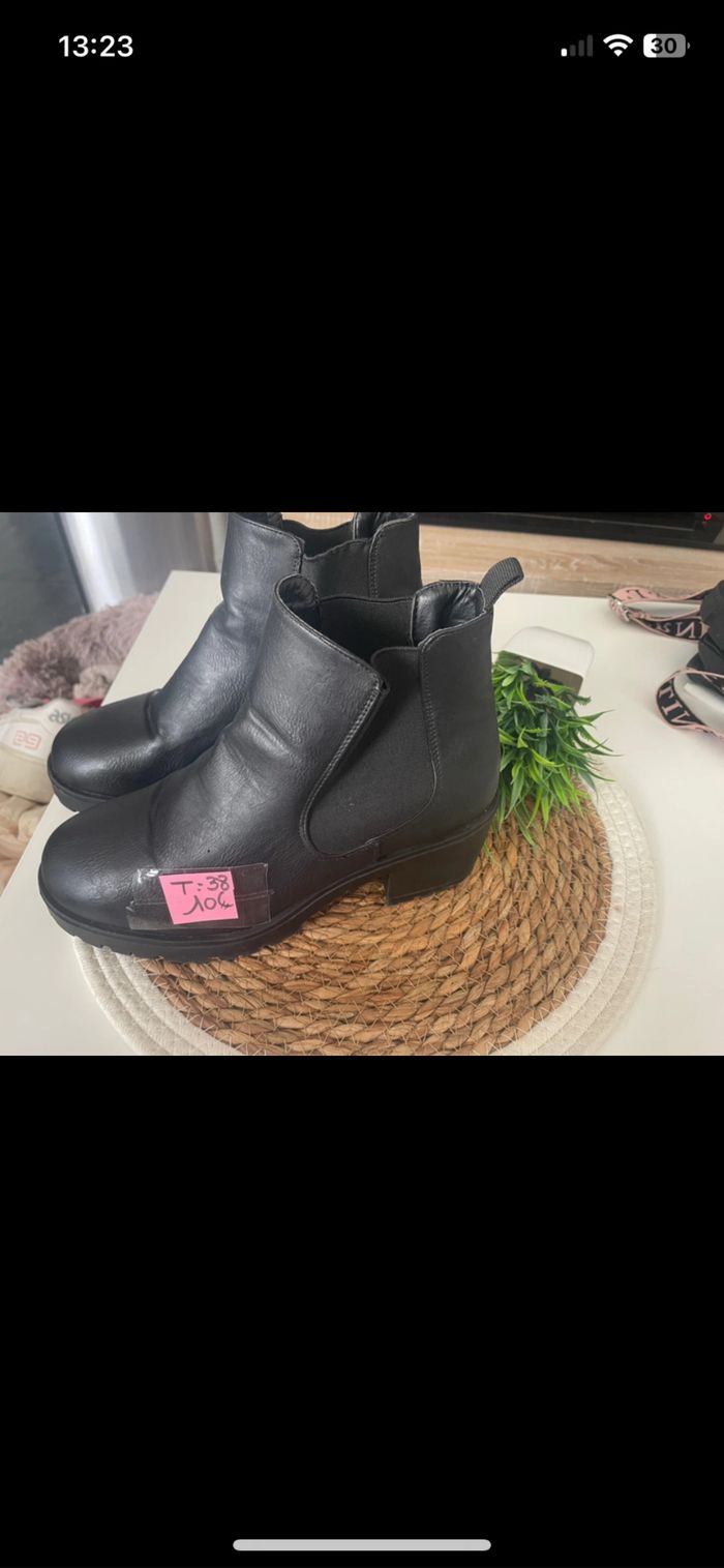 Bottines femme de couleur noir avec élastique. 👢 Les bottine n’ont était porté que rarement donc elles sont en très bon état. Taille 38 (taille correctement) À vendre au prix de 10€. Pour plus d’informations n’hésitez pas à me contacter 🌺