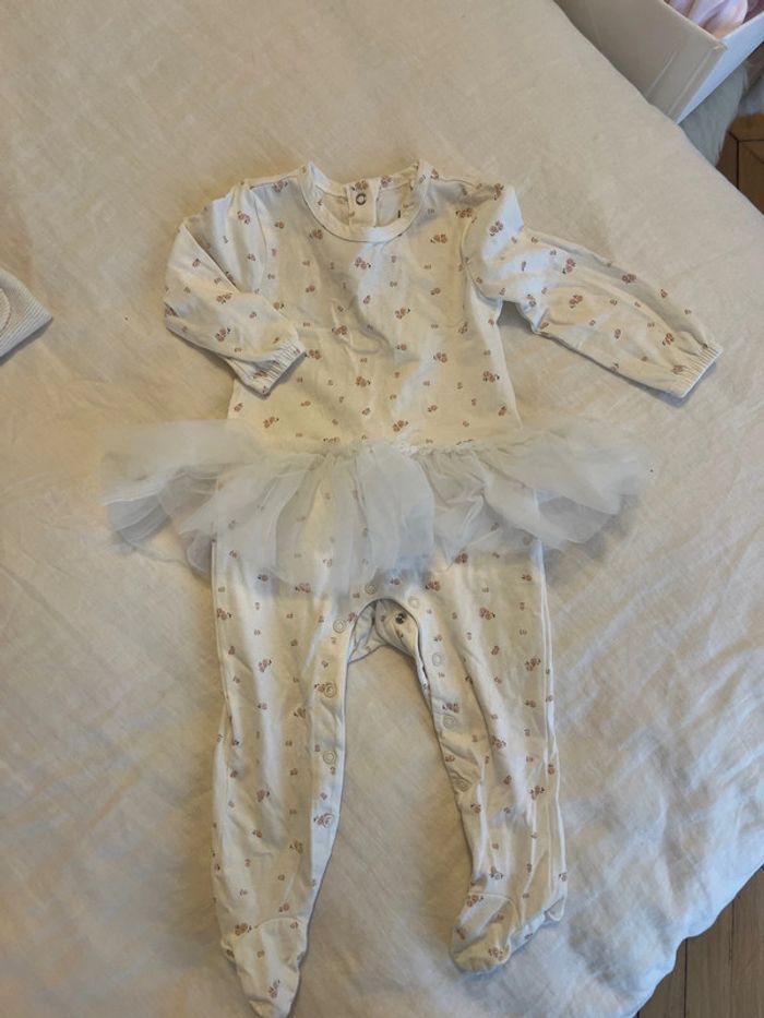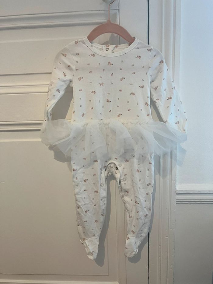 Pyjama Tutu Fille 9M Blanc avec petites fleurs Uniquement lavé