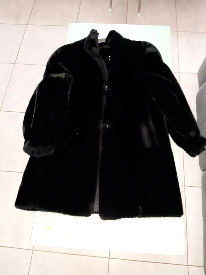 Manteau fausse fourrure matière soyeuse Taille 36 /38 Aisselles à aisselles 57 cm Longueur 89 cm Parfait état #sevileano_manteaux