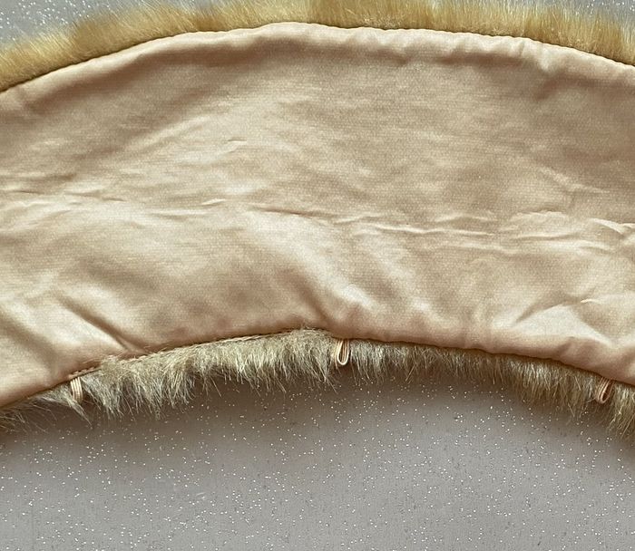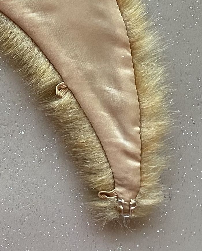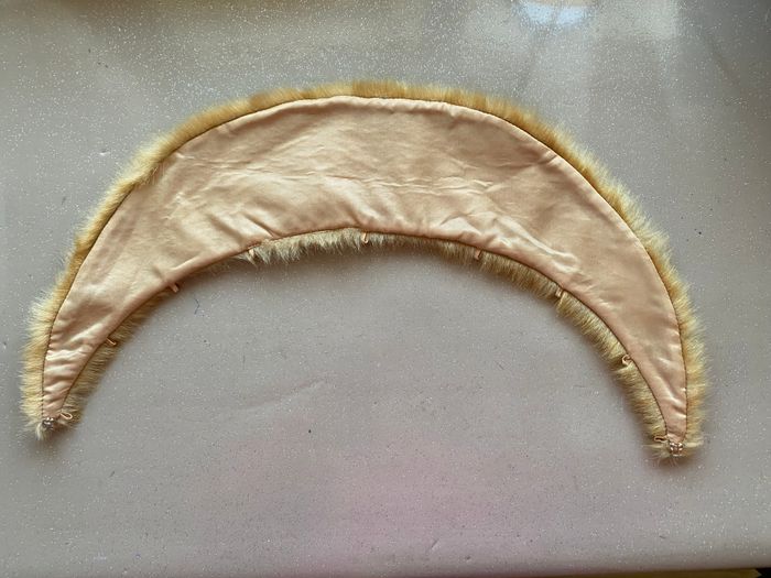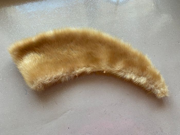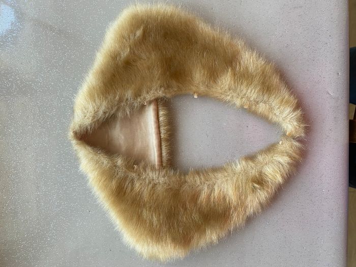 Col arrondi imitation fourrure, coloris roux Doublé, agrafes et fixation. S'adapte sur les cols de toutes sortes de vêtements. Longueur 62cm.