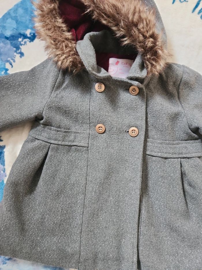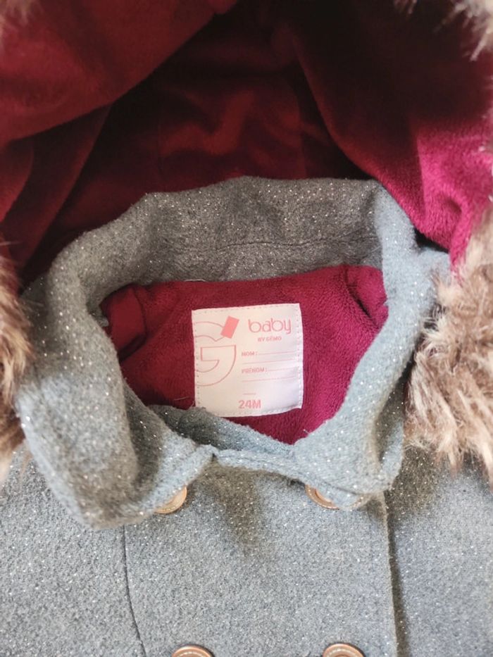 Manteau gris capuche avec fausse fourrure 24 mois - photo numéro 14