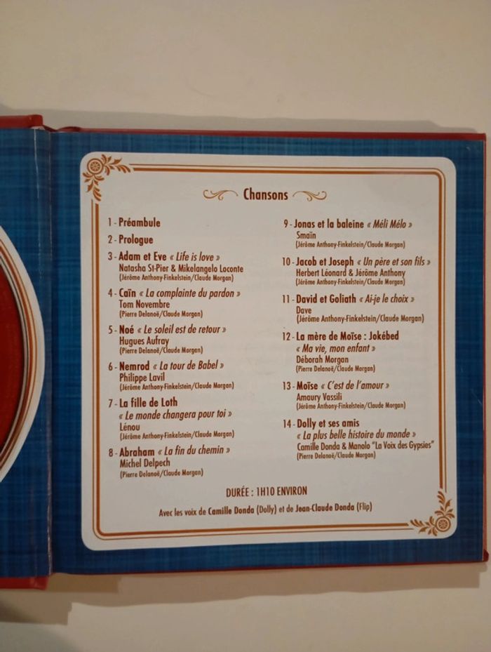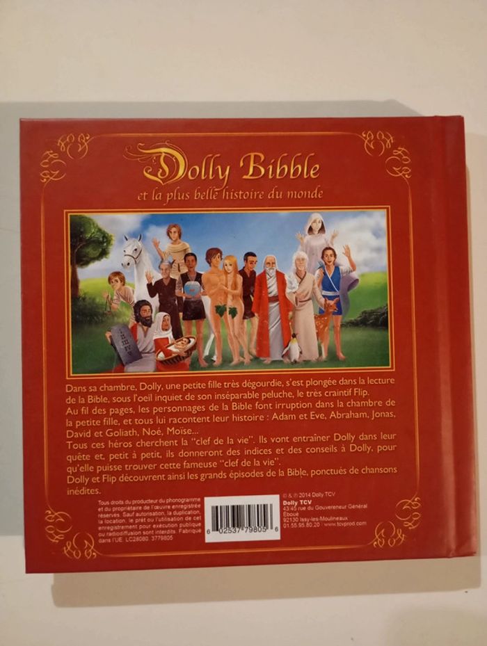 La première bible musicale pour les enfants et toute la famille. Dolly Bibble est une petite fille drôle et intrépide. Un jour, alors qu'elle est tranquillement installée dans sa chambre, elle provoque un sortilège en lisant les premières lignes de la Bible ; c'est alors que tous les personnages de son livre vont apparaître de manière spectaculaire dans sa chambre pour lui livrer un message... Un livre illustré de 100 pages accompagné d'un CD contenant 12 chansons originales, sur des musiques de Claude Morgan et des textes de Pierre Delanoë, qui de son vivant, s'était investi dans ce projet avec beaucoup d'enthousiasme. Liste des chansons : 1 Préambule 2 Arrivée Adam Et Eve 3 Life Is Love 4 La Complainte Du Pardon 5 Le soleil est de retour 6 La Tour De Babel 7 Le Monde Changera Pour Toi 8 La fin du chemin 9 Méli Mélo 10 Un Père Et Son Fils 11 Ai-Je Le Choix 12 Ma Vie Mon Enfant 13 C'Est De L'Amour 14 La Plus Belle Histoire Du Monde 102 pages Dimensions : 14,2 x 14,2 cm Livre cd en parfait état Je vends d'autres livres sur la religion #phil_peg_religion ou livre cd #phil_peg_livrecd #noel #bible #religion #livrecd