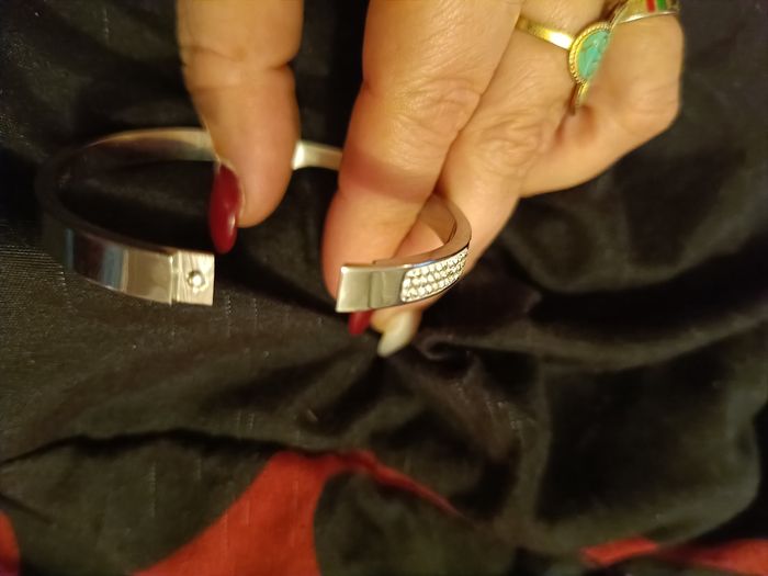 Jonc strassé argenté avec motif voir photo en acier inoxydable pour moyen poigné jamais porté