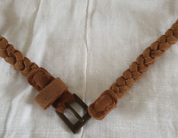 Ceinture fine marron tressée en cuir - photo numéro 1