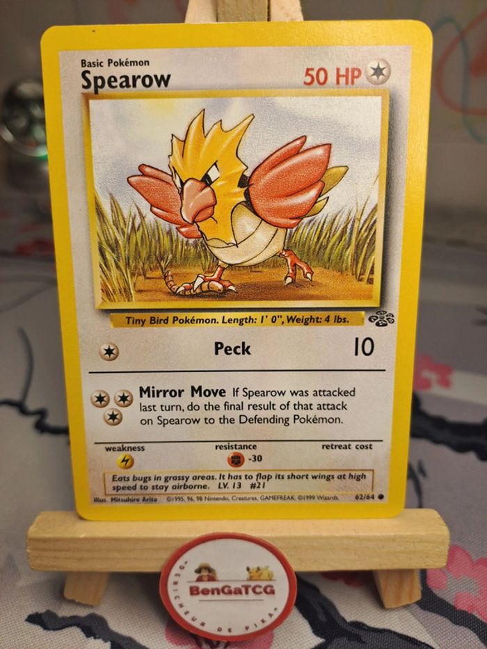 Pokemon card game Spearow 62/64 base set jungle ed2 wizards 🇬🇧 Etat excellent Check my english cards whit this link #PokeENG_BenGaTCG Contact me for more photo, fast and protected shipping. Plus de photo sur simple demande, n'hésitez pas à me contacter pour des lots ou renseignements.