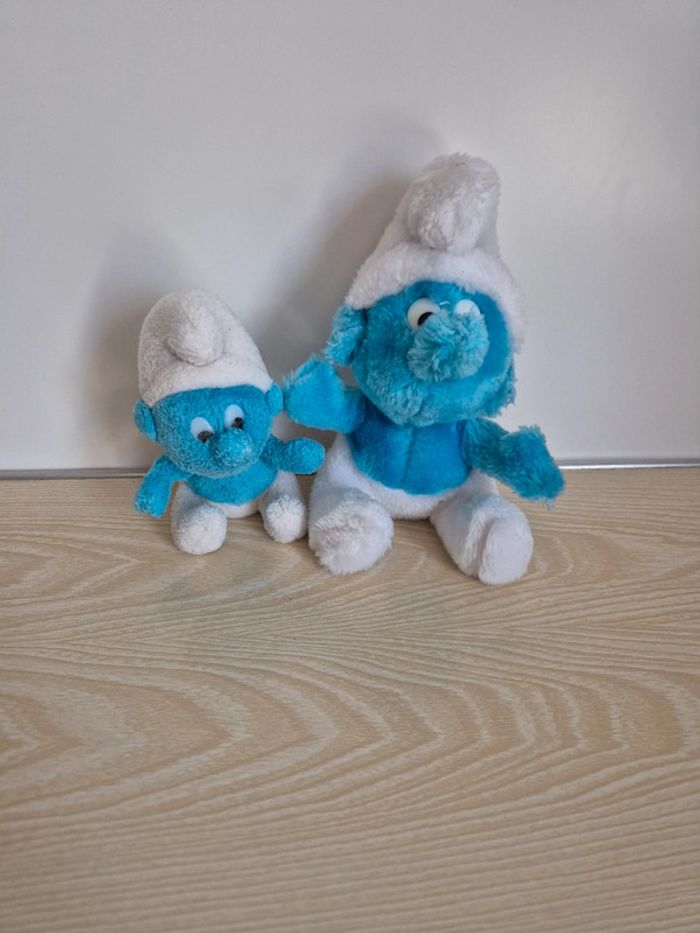 Lot de 2 peluches Schtroumpfs La grande fait 19 cm de haut La petite fait 13 cm de haut The smurfs #familly86peluche