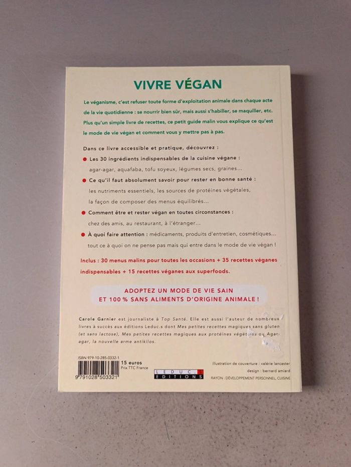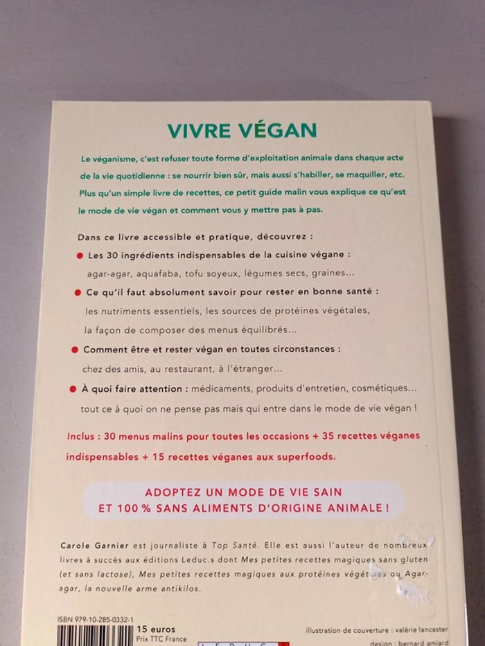 Carole Garnier vivre végan aliments, vêtements, produits de beauté, loisirs : une vie saine et respectueux des animaux. Voici le lien pour voir tous mes livres pour réduire les frais de port et avoir des réductions automatiques par lot de 3 ou 5 : #romain75015_Livres et #romain75015_Santé. Envoi rapide et soigné, bien protégé pour le transport.
