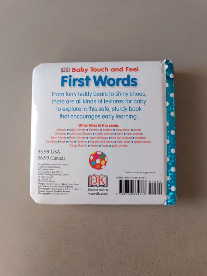First Words Baby touch and feel. Livre en anglais. Voici le lien pour voir tous mes livres pour réduire les frais de port et avoir des réductions automatiques par lot de 3 ou 5 : #romain75015_Livres et #romain75015_livres_enfants et #romain75015_livre_en_anglais. Envoi rapide et soigné, bien protégé pour le transport.