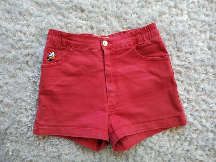 Joli short rouge 12 ans Donald Family by Floriane Disney Brodé poche avant et poche arrière Daisy