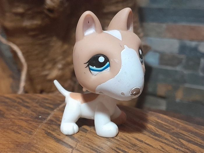 Figurine Petshop chien "Bull Terrier ". Figurine Petshop bon état. Vendue comme sur les photos.Il peut y avoir de légers défauts. N'hésitez pas à consulter mes autres annonces , création de lot possible.