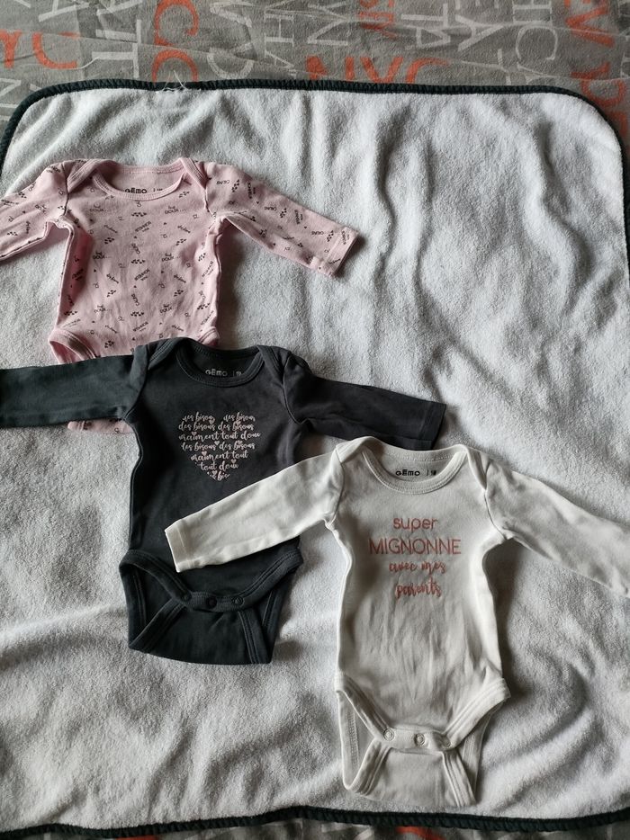 Lots de 3 bodies 1 mois déjà porté et en très bon état.