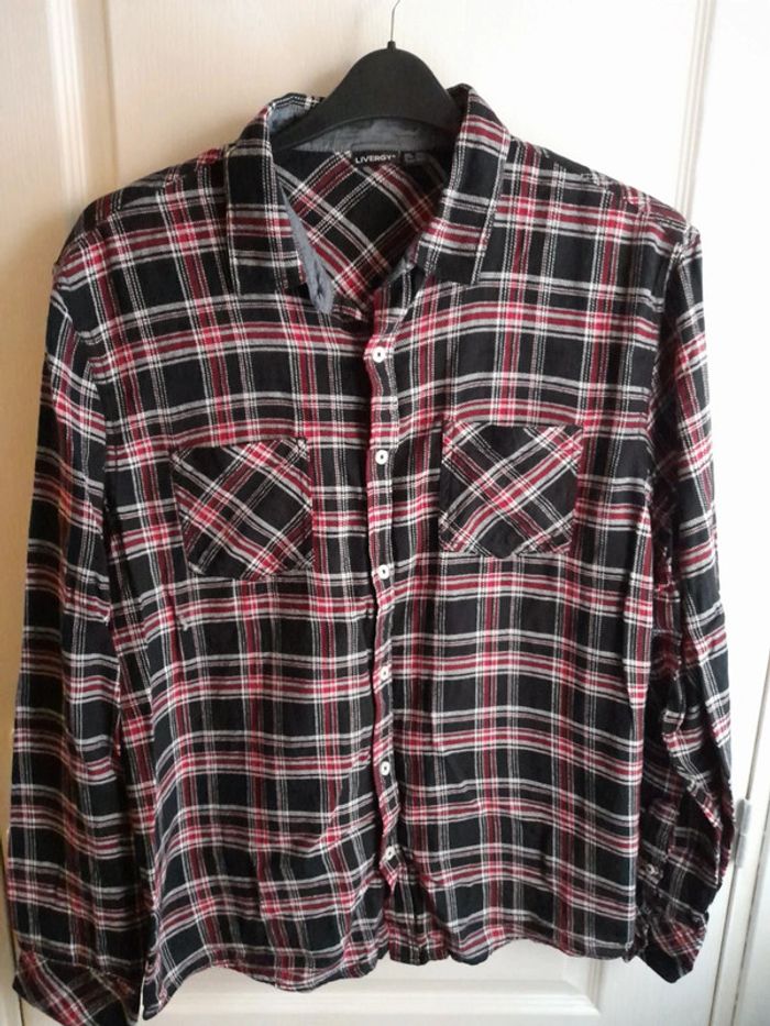 Chemise carreaux bordeaux/noir - photo numéro 1