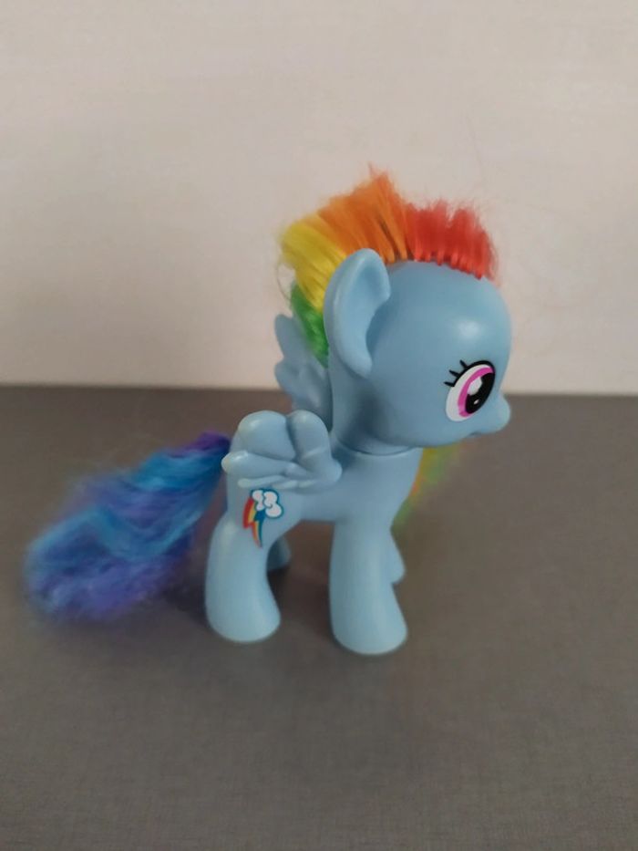 🎁 3 articles achetés = le 4ème offert 🧚‍♀️ Rainbow Dash est un poney pégase femelle et un des personnages principaux de la série télévisée d'animation de My Little Pony : Les amies, c'est magique ! Elle est responsable du maintien de la météo et de la pluie dans le ciel de Poneyville 🧚‍♀️ Authentique et rare, issu du coffret exclusif Midnight in Canterlot 🧚‍♀️ hauteur patte- haut de la tête : 7,5 cm 🧚‍♀️ Autres photos sur demande 🧚‍♀️ Propre et désinfecté 🧚‍♀️ La crinière et la queue ne sont plus aussi doux qu'à l'achat. 🏡 non fumeur et sans animaux #venteperle17jeux_jouets 🎁 Pour tout achat de 10€ et plus dans mon dressing, un article à choisir en suivant le lien donné sur ma page de profil.