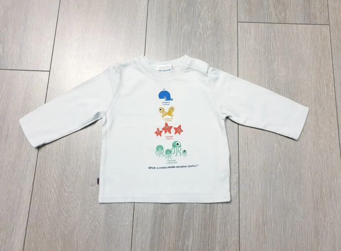 Maillot manche longue blanche avec motif. Garçon 6 mois. Marque Obaibi Très bon état Il y a plein d autres articles dans cette taille dans mon dressing  🤗 #lunaclara60garcon6mois