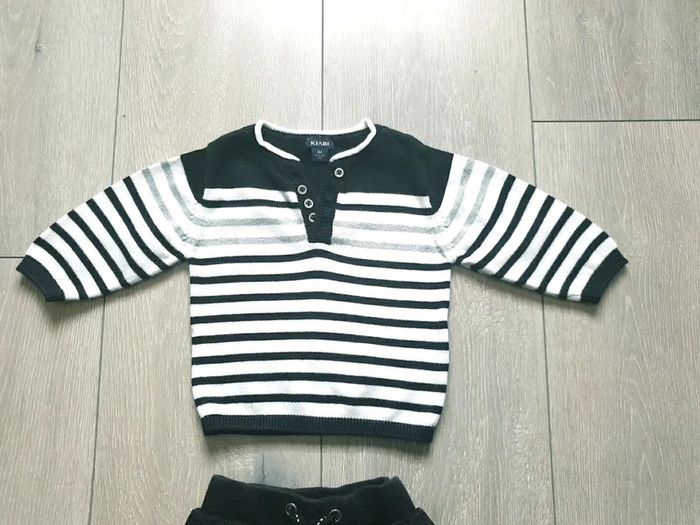 Ensemble 2 pièces : - Pull noir/ blanc/gris. Garçon 3 mois. Marque Kiabi - pantalon noir. Garçon 3 mois. Marque Pat et Ripaton Tres tres bon état Il y a plein d autres articles dans cette taille dans mon dressing  🤗 #lunaclara60garcon3mois
