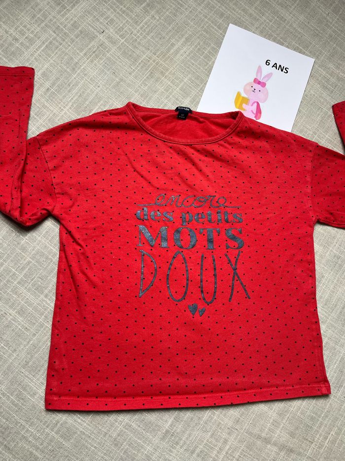 Magnifique t-shirt à manches longues de la marque Kiabi Inscription « encore des petits mots doux » Taille 6 ans Groupez vos achats pour profiter des remises activées sur les lots et réduire vos frais de port #chrisbc17fille6ans