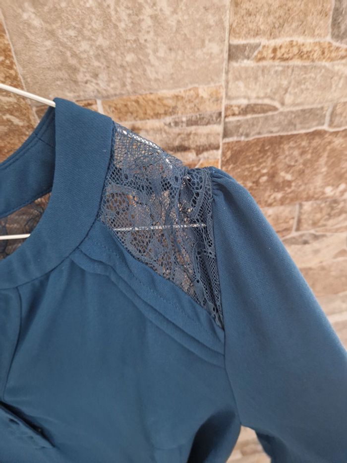 1 robe soirée manche longue dentelle bleu taille 44 marque etam - photo numéro 4