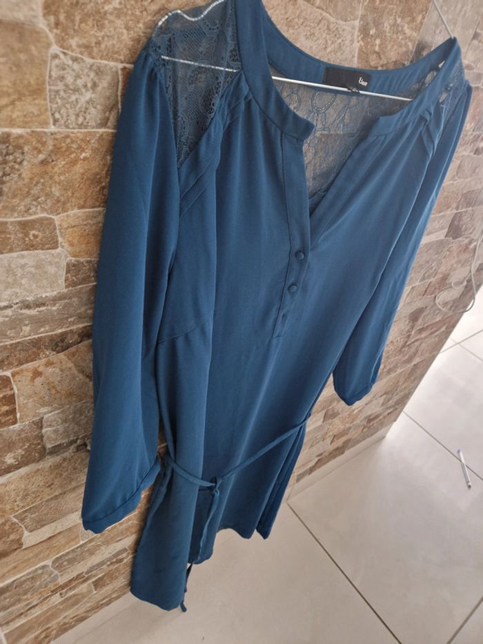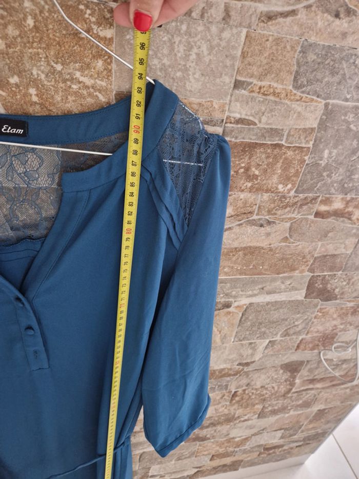 1 robe soirée manche longue dentelle bleu taille 44 marque etam - photo numéro 11