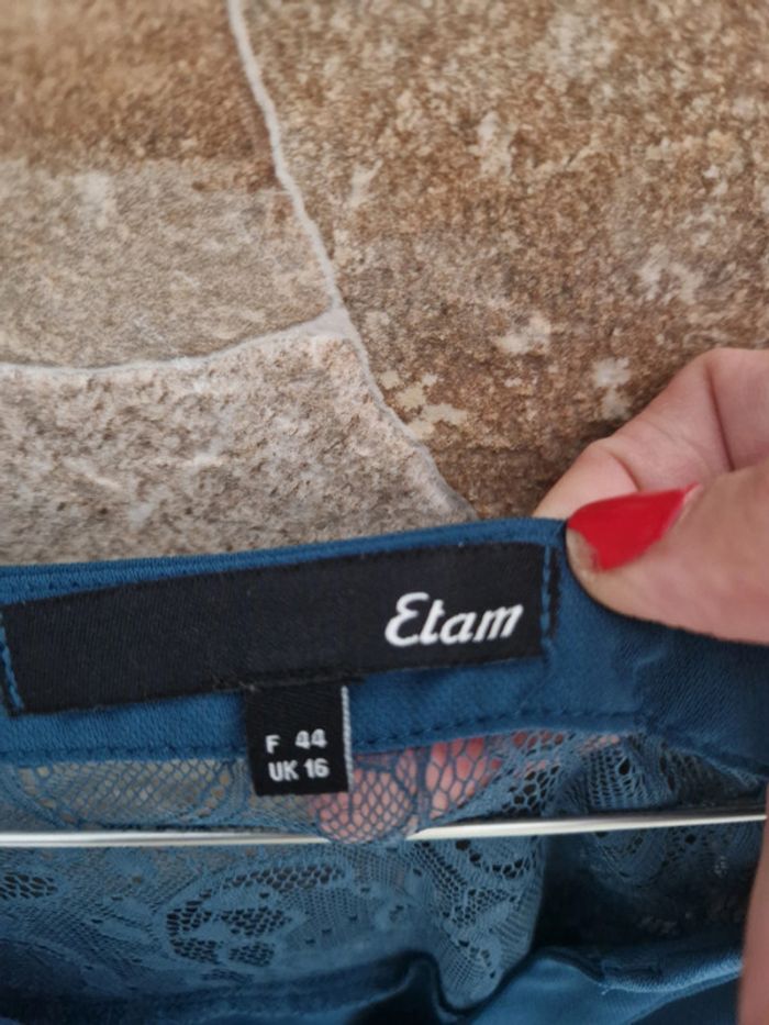 1 robe soirée manche longue dentelle bleu taille 44 marque etam - photo numéro 12