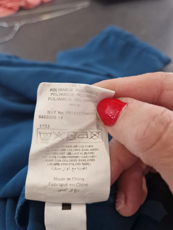 1 robe soirée manche longue dentelle bleu taille 44 marque etam dentelle epaules et dos, lien la taille 2 boutons devant 67cm sous l'aisselle jusqu'en bas env 53cm de large aisselle à aisselle env 57 cm env taille largeur 94 cm env en haut jusqu'en bas porté 1 x #laetie69_femmesTAILLE44