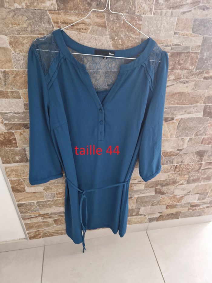 1 robe soirée manche longue dentelle bleu taille 44 marque etam