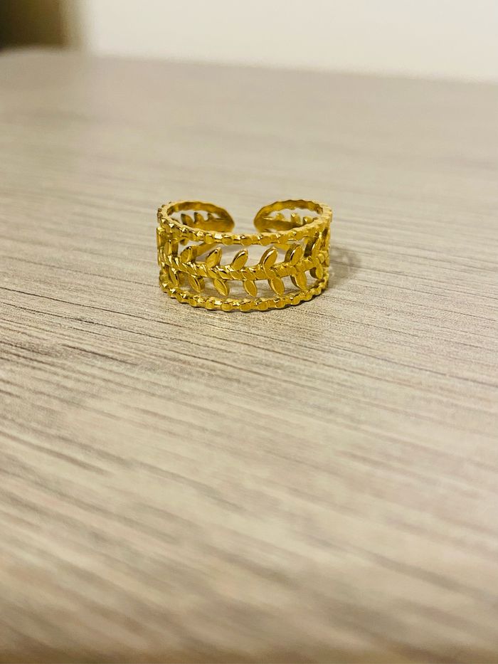 Bague épaisse doré feuilles de laurier acier inoxydable - photo numéro 1