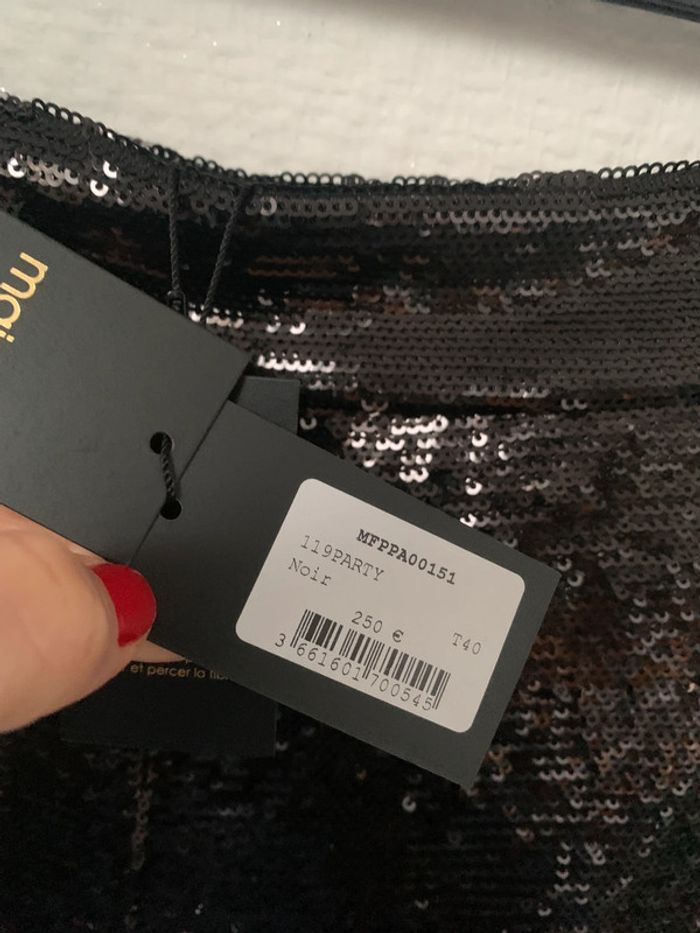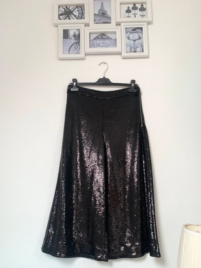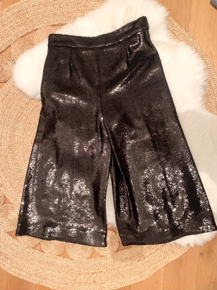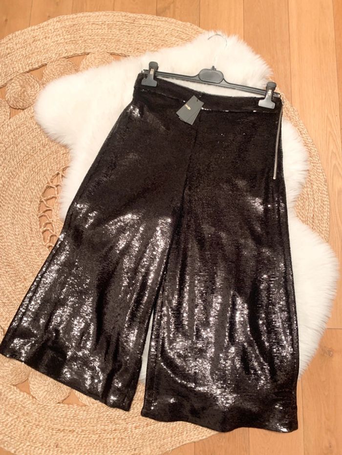 Très beau pantalon en sequins noir signé MAJE PARIS le pantalon idéal pour tous les événementiels A porter avec des bottes hautes en cuir noir pour un look glamour ♥️ Avec des escarpins 👠 à talon pour un look sexy chic ou tout simplement une paire de rangers pour un look rock Le pantalon party idéal pour les fêtes de fin d’année 🎄🎁 nouvel an 🥳 Taille