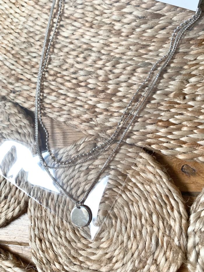 Collier triple chaîne avec pendentif médaillon argenté en acier inoxydable Neuf