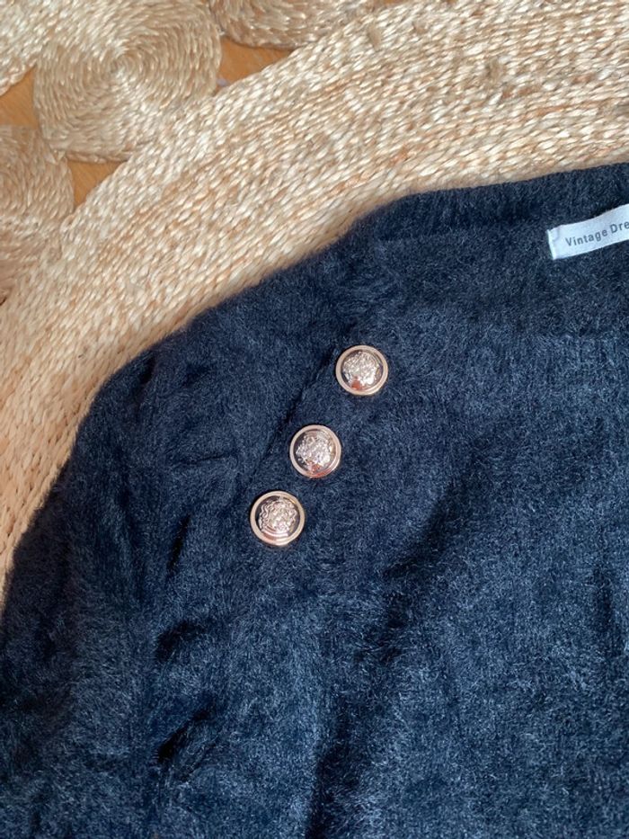 Très beau pull noir matière fluffy très doux ♥️ Avec de jolis boutons dorés aux épaules Vintage Dressing 40€