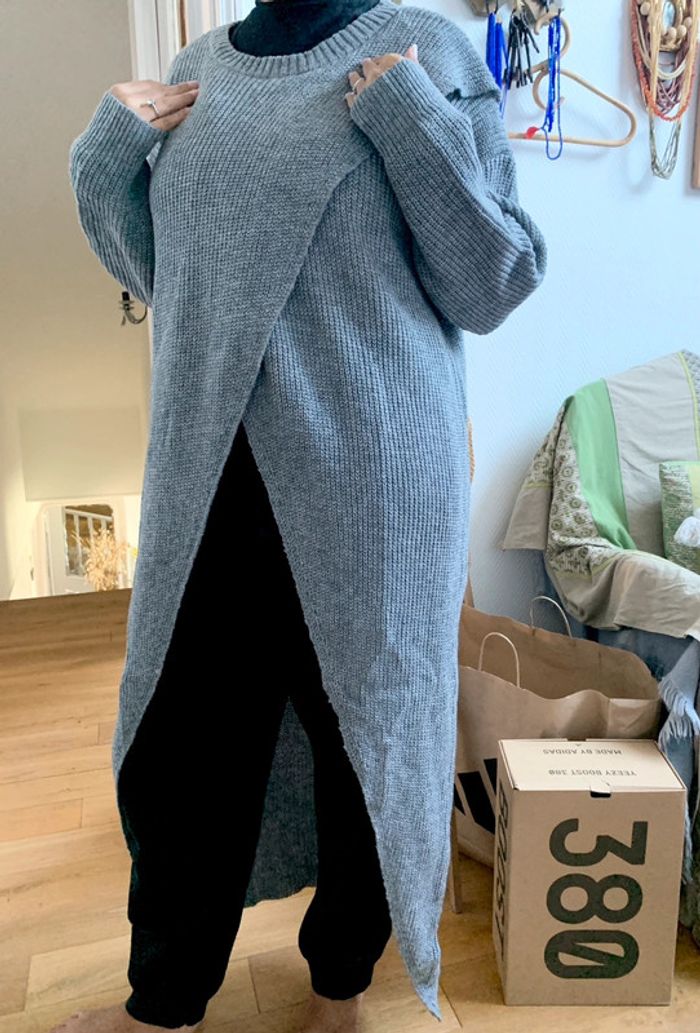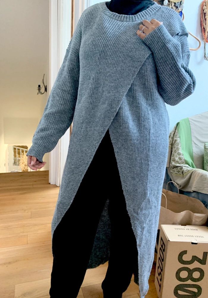 Très belle robe pull croisé en maille Manches longues Couleur gris chiné Neuve! Taille L #robepull #pull_long #pull_longue_manche