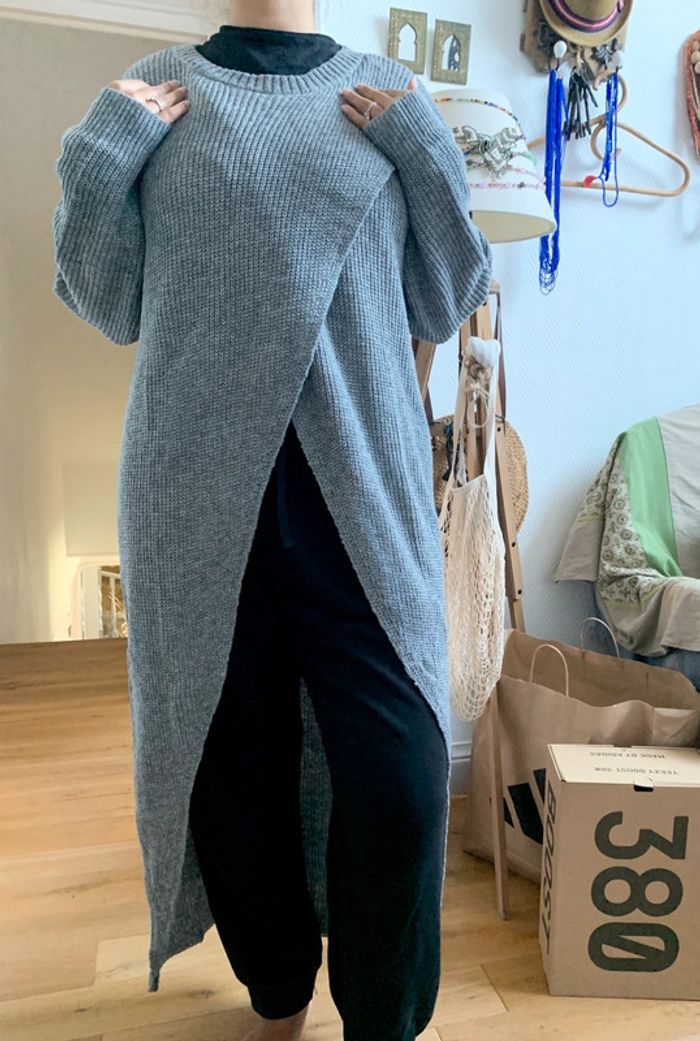 Magnifique robe pull en maille grise | Taille L - photo numéro 1