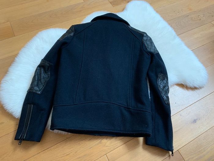 Manteau blouson veste en Laine & Cuir Naturel | The Kooples Marque Française 🇫🇷 - photo numéro 3