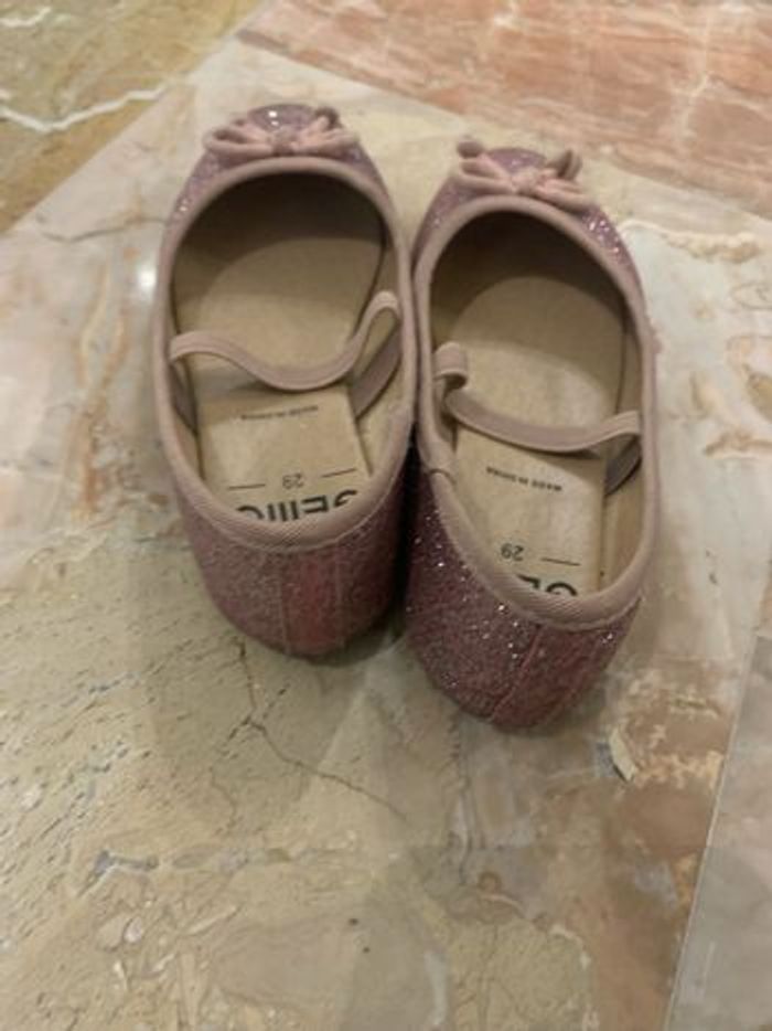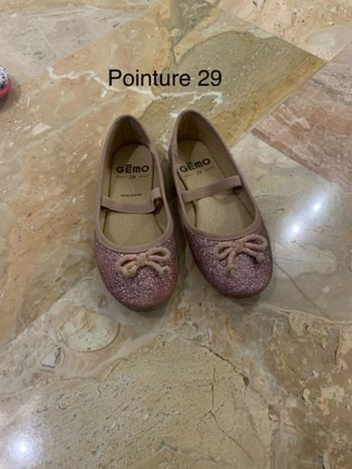 Chaussures 29 Pailletées roses rosées Très bon état excepté un tout petit peu de paillettes en moins sur le devant en dessous donc ne se voit pas voir photos Avec élastique pour bien tenir le pied Ballerines