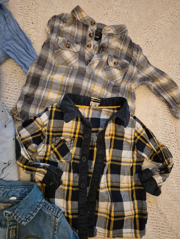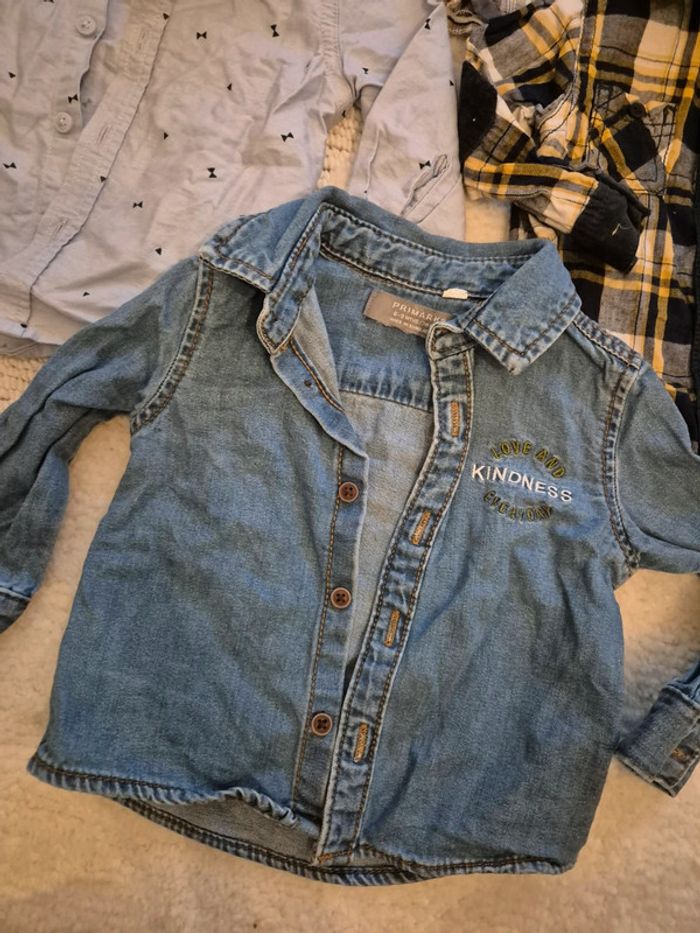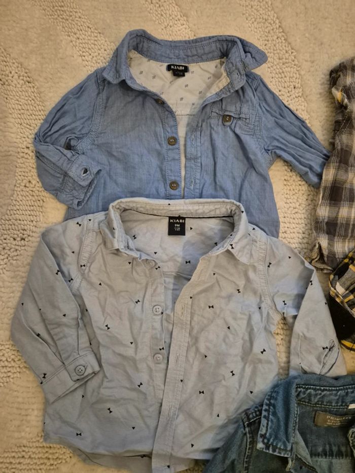 #audette80_garçon9mois Lot de 5 chemises 9 mois Kiabi tape à l'œil et primark Primark neuve juste laver Les autres TBE sauf la 1er bleu en haut à gauche kiabi une tâche à l'intérieur du col donc donner Acheter fin 2023 et début 2024 1 chemise coûte environ 10e en magasin (voir plus selon la marque) je fais 9€ le lot