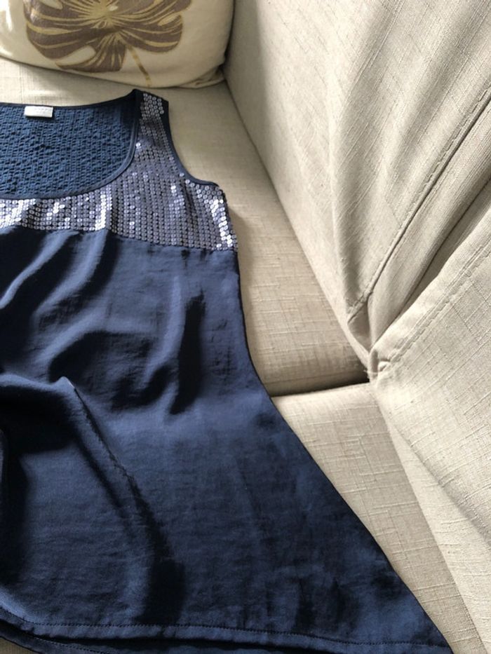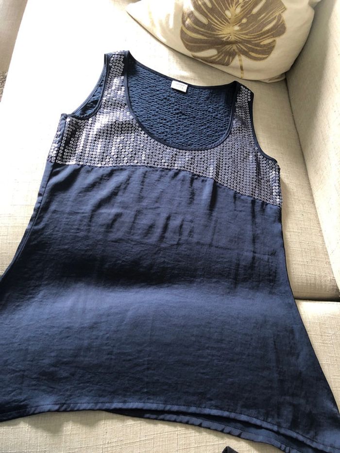 Bleu nuit Fluide Avec sequins Noté 34 mais taille grand plutôt 36 et se porte très fluide