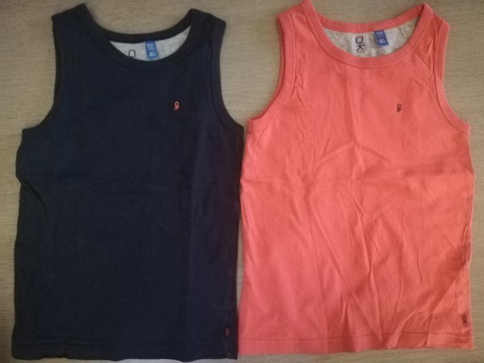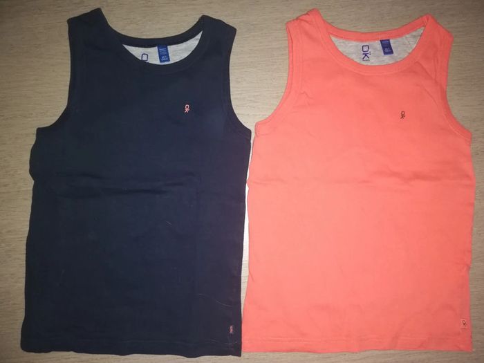 2 débardeurs 8 ans corail et bleu marine okaidi