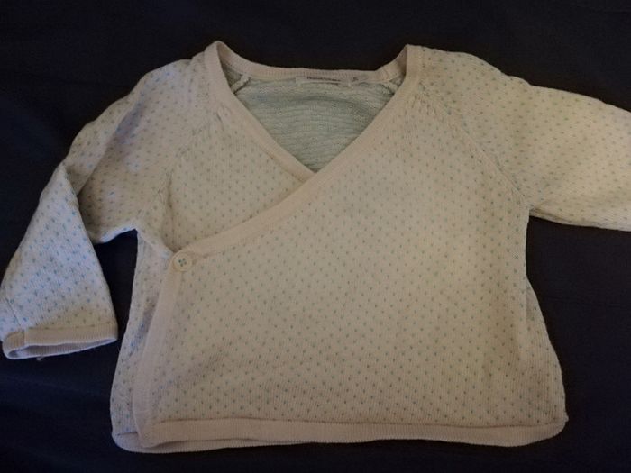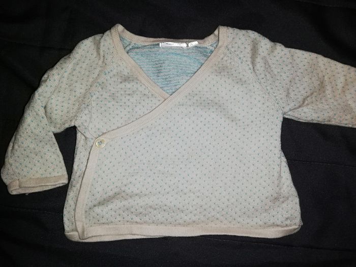 Gilet beige et turquoise 3 mois - photo numéro 1
