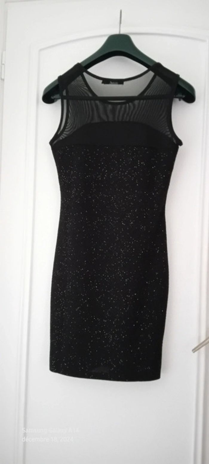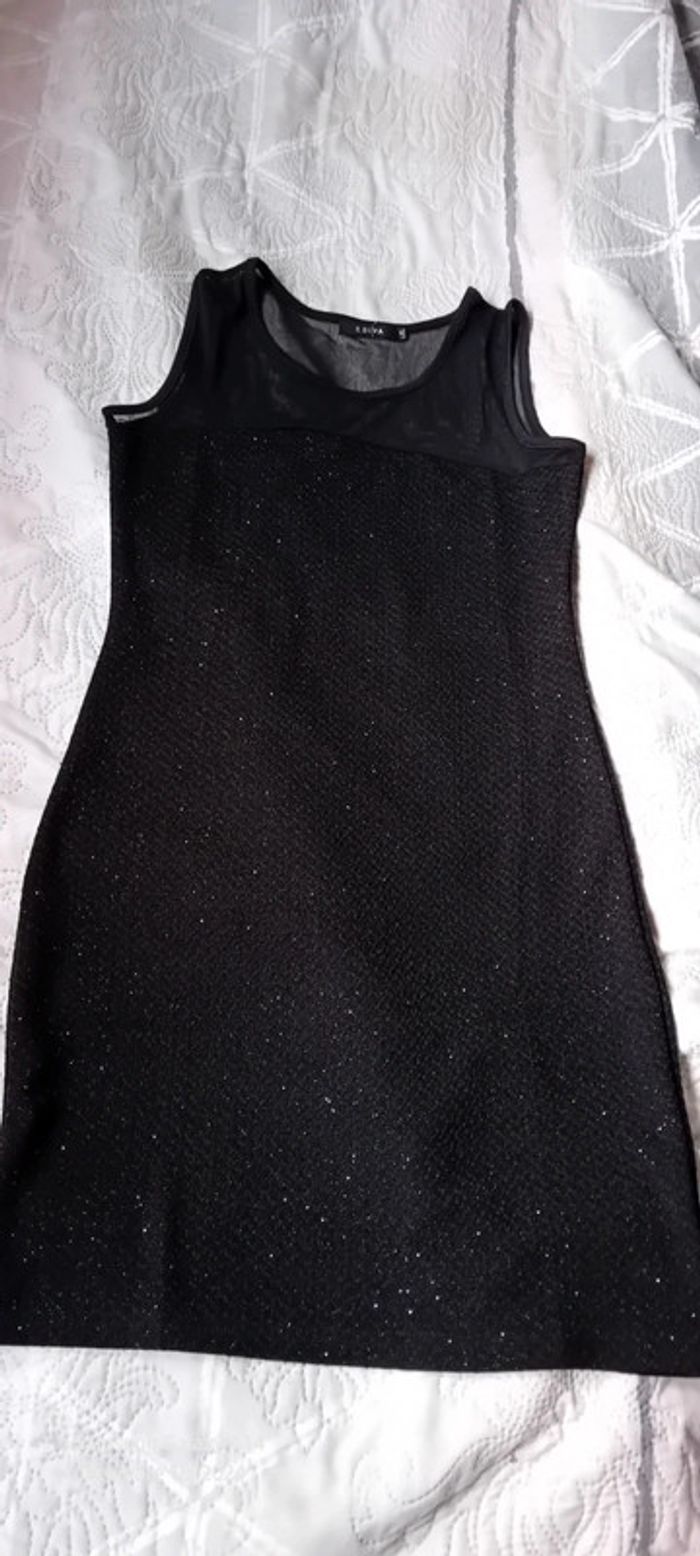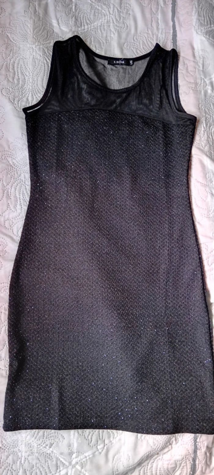 Robe de soirée bimatiere noire à paillettes scintillantes femme L E.diva - photo numéro 1