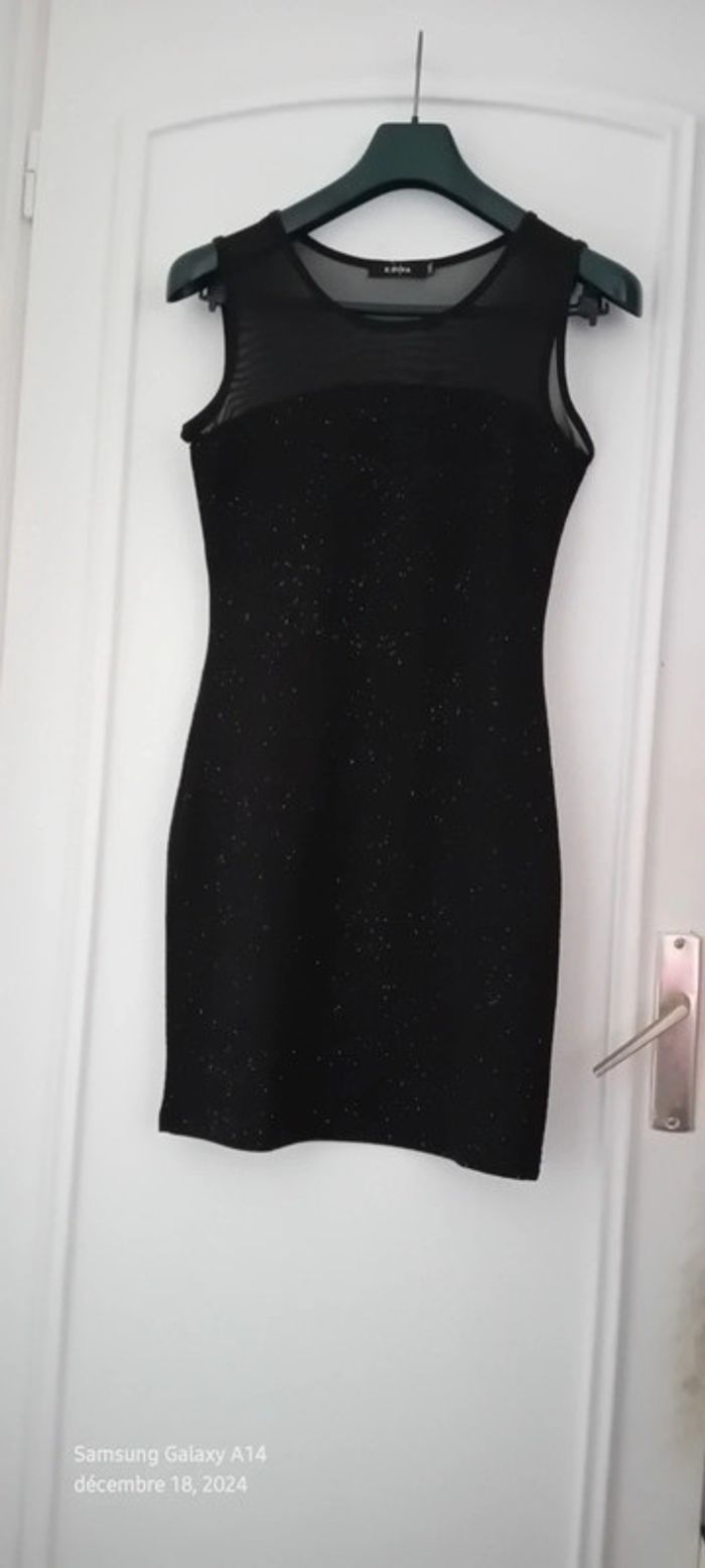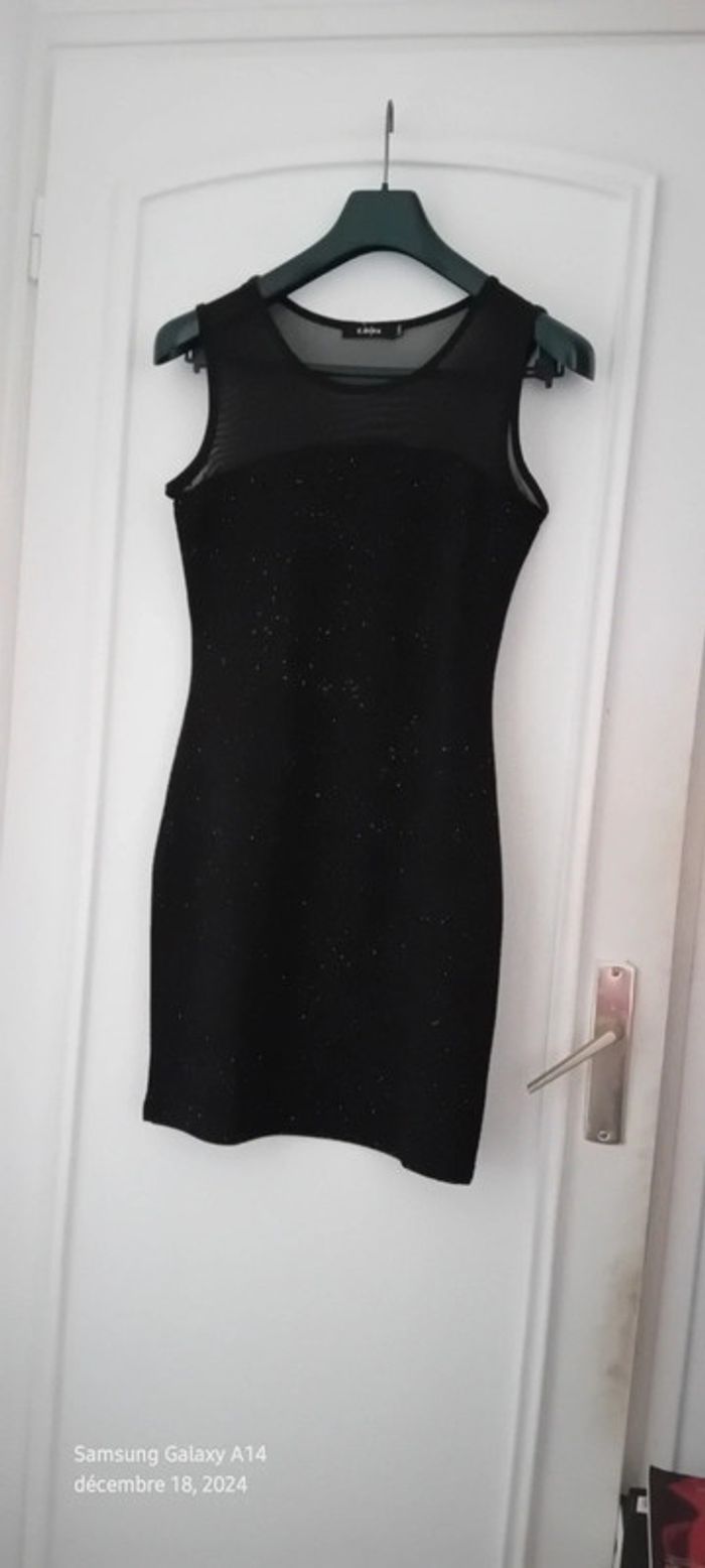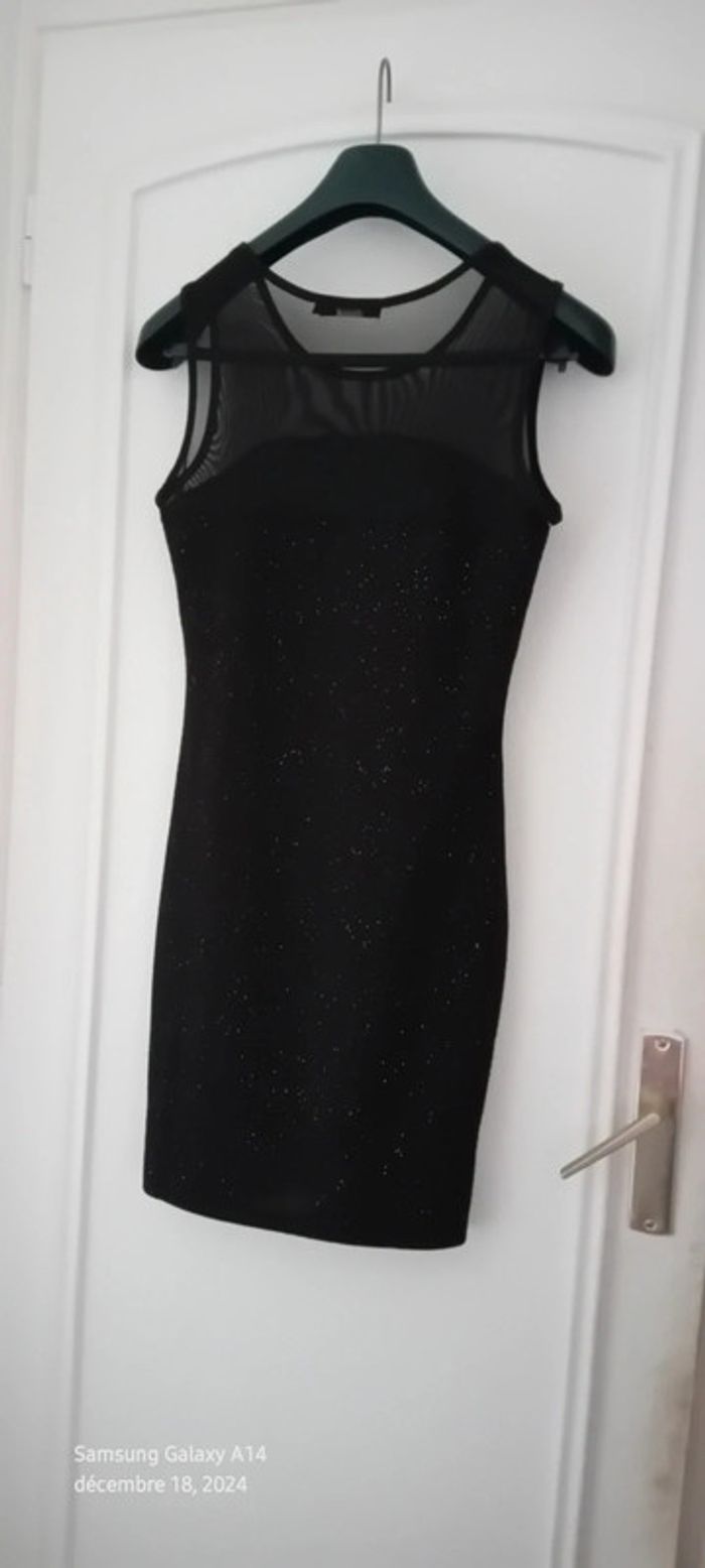 Robe de soirée bimatiere noire à paillettes scintillantes femme L E.diva - photo numéro 1