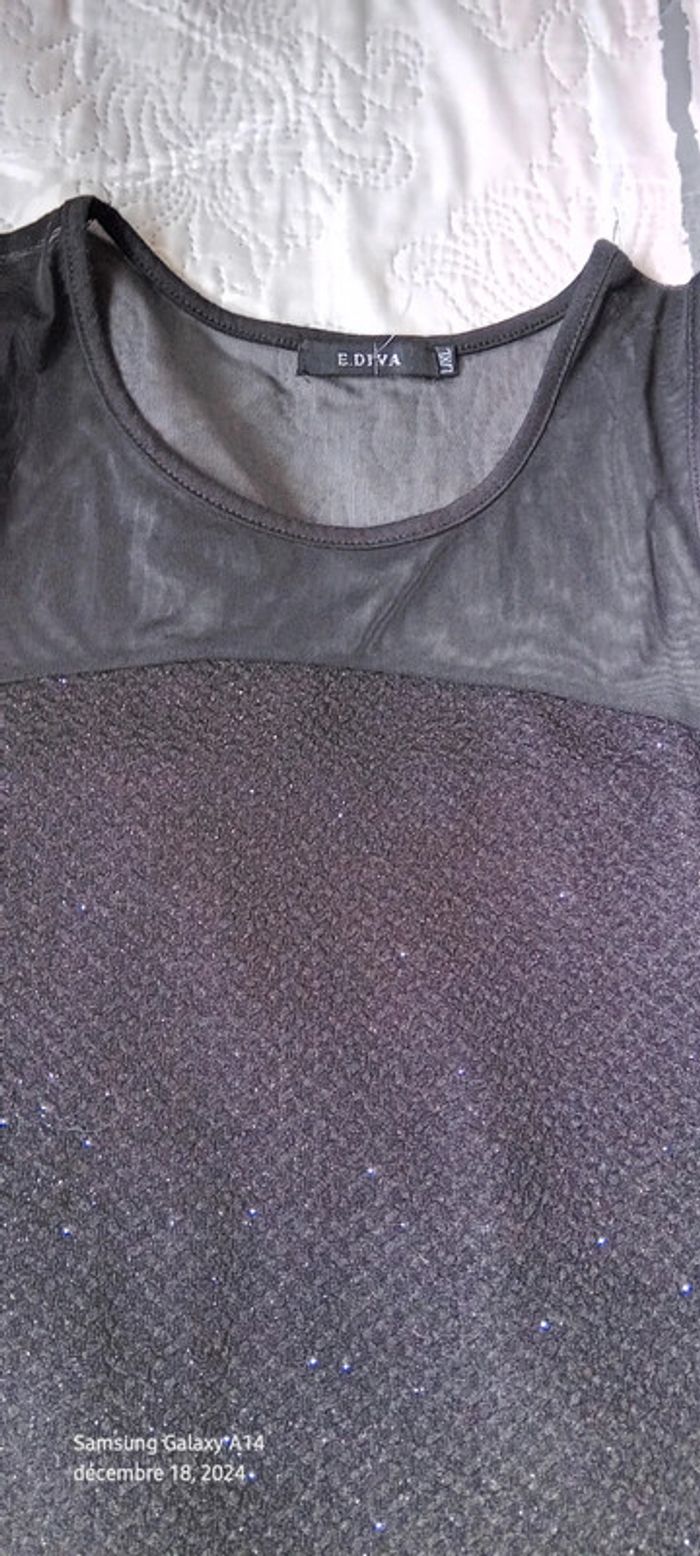 Robe de soirée bimatiere noire à paillettes scintillantes femme L E.diva - photo numéro 2