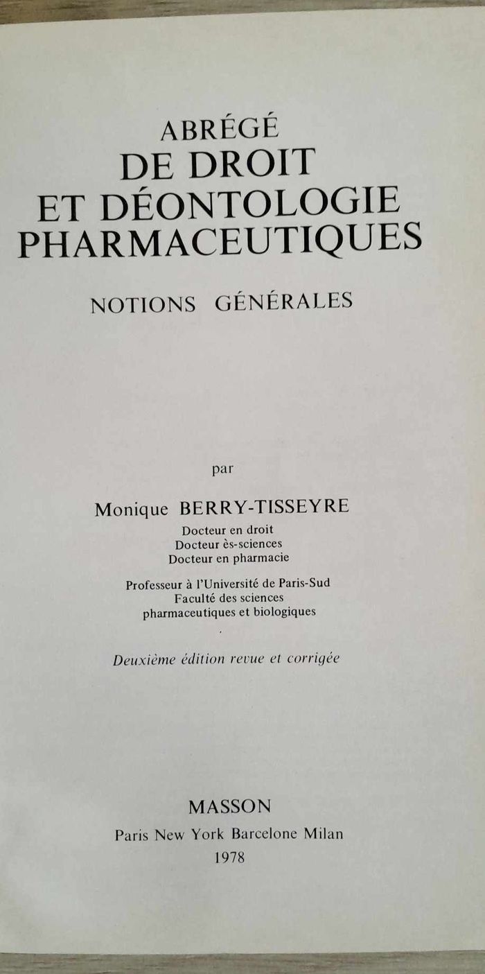 Abrégé de droit et déontologie pharmaceutique - M.Berry - photo numéro 2