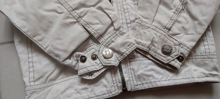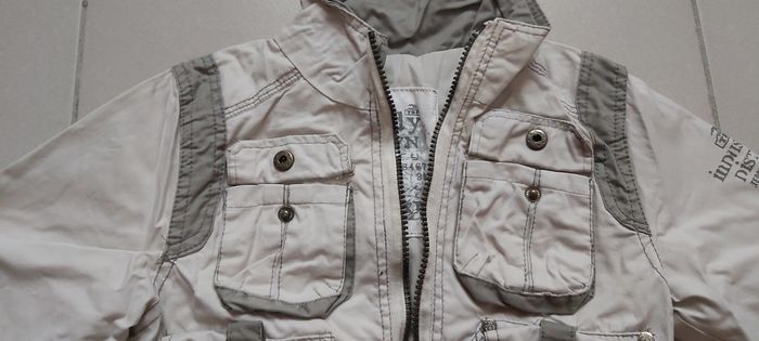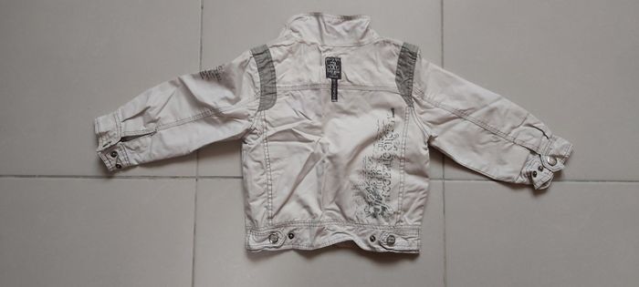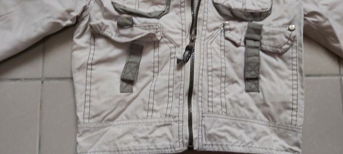 Veste été Taille 3 ans Couleur gris clair et foncé 4 poches ( 2 en haut Fermeture par pression, 2 en bas Fermeture par scratchs) Réglable aux poignets ainsi que dans le bas du dos #carineddivetementgarçontroisans