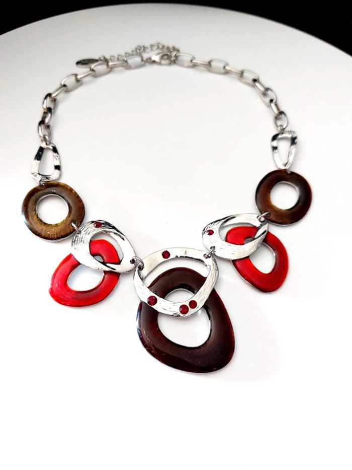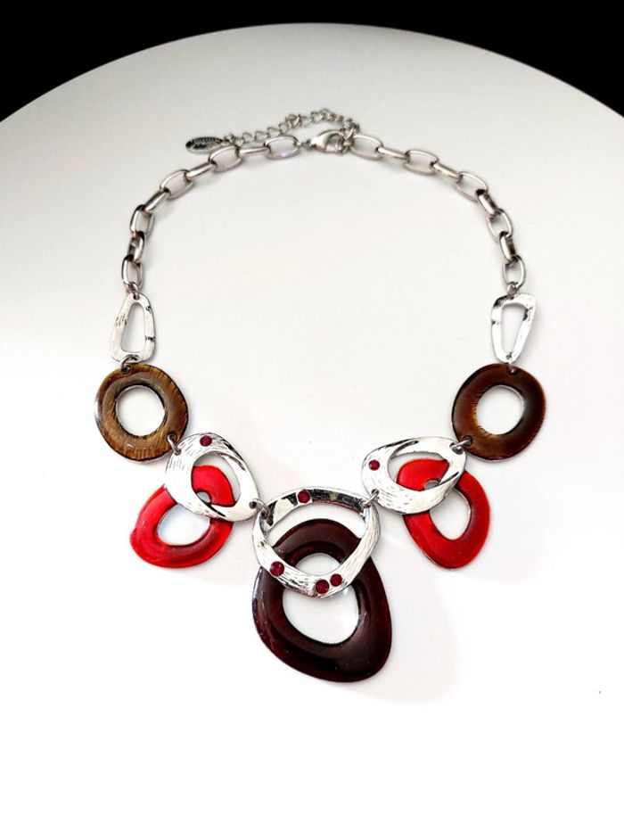 Magnifique collier fantaisie rouge argenté - photo numéro 1