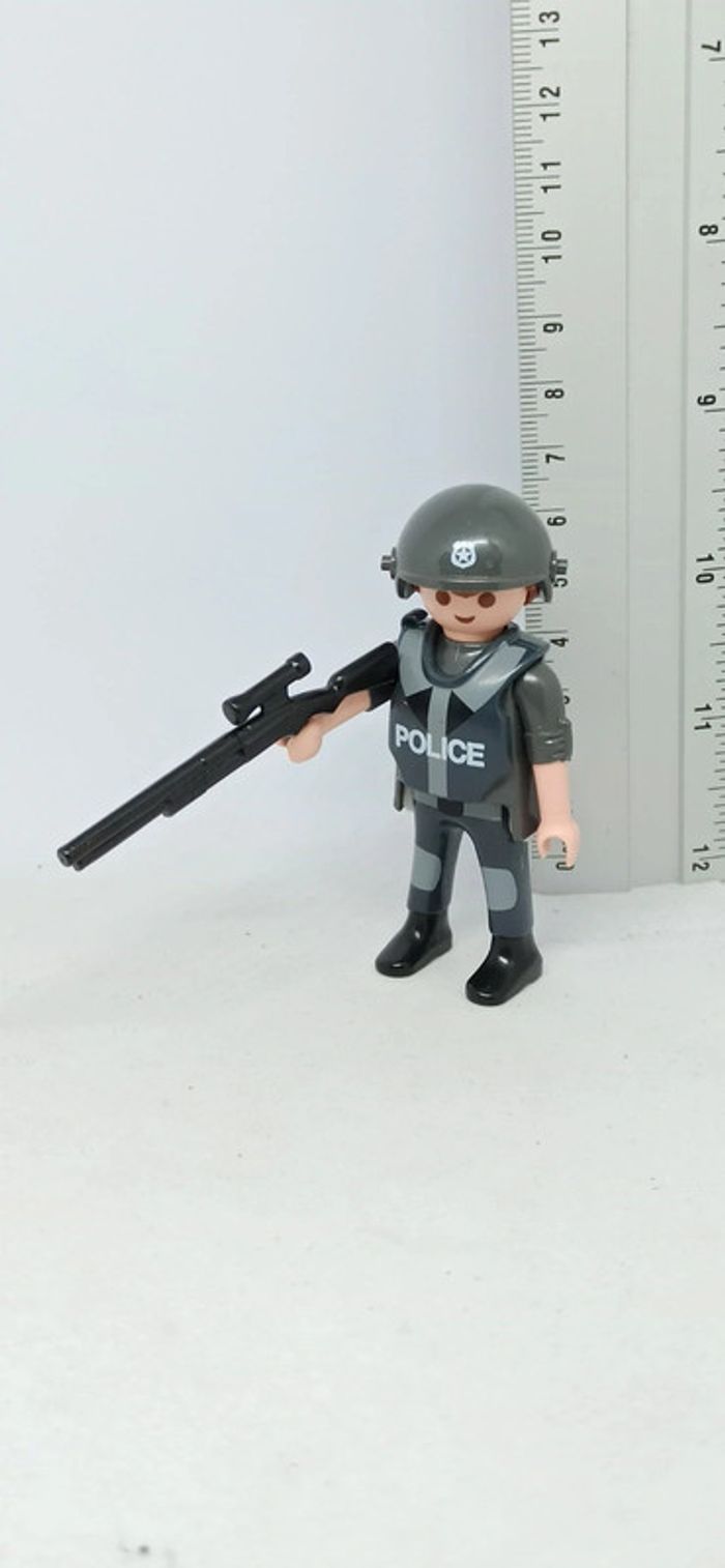 Homme policier avec casque et fusil noir playmobil - photo numéro 1