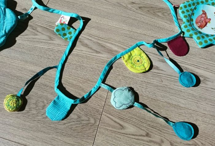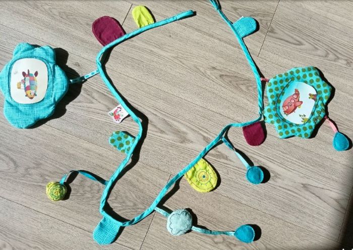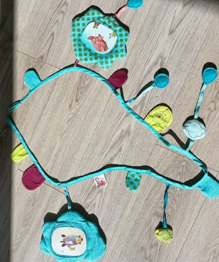 Très jolie guirlande murale d'1,60m de longueur marque Lilliputiens. Idéale pour décorer une chambre de bébé ou d'enfant. 2 petits cadre plastifiés pour photos et 4 galets magnétiques pour accrocher photos ou dessins. Neuve sans étiquette.