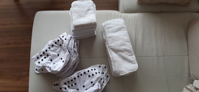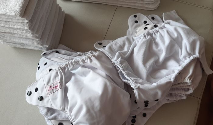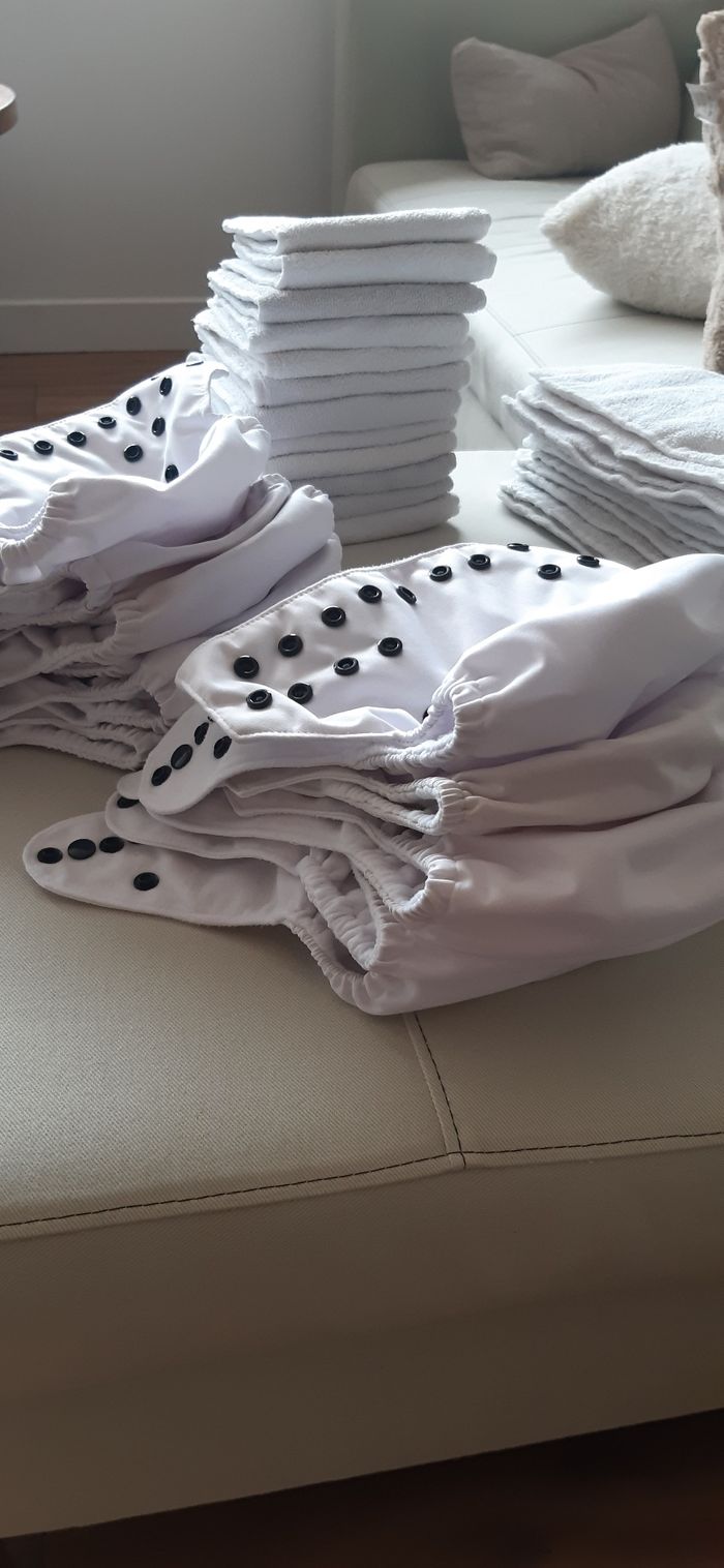 12 couches lavables te1 24 inserts Aucune tâche, très bon état. Couche qui s'adapte à l'âge de bébé, taille réglable par bouton pression. De 4kg à 15kg
